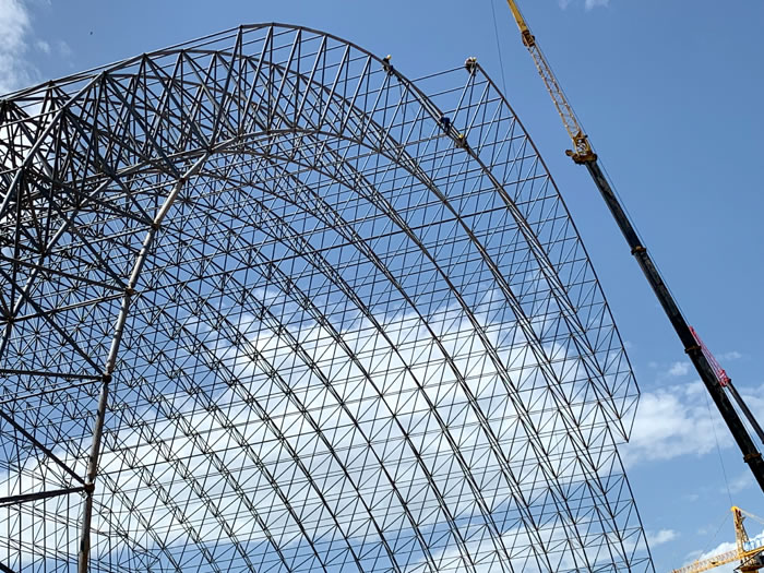 (2)网架加工前应对现场尺寸进行复测,确认无误后方可进行加工、安装;网架制作、运输、安装应遵守《空间网格结构技术规程》JGJ7-2010、《钢网架兴城螺栓球节点》JG/T 10-2009、《钢网架兴城螺栓球节点用高强度螺栓》 GB/T 16939-2016、《兴城钢结构兴城工程兴城施工规范》 GB50755-2012、《兴城钢结构兴城工程兴城施工质量验收标准》 GB50205-2020。
